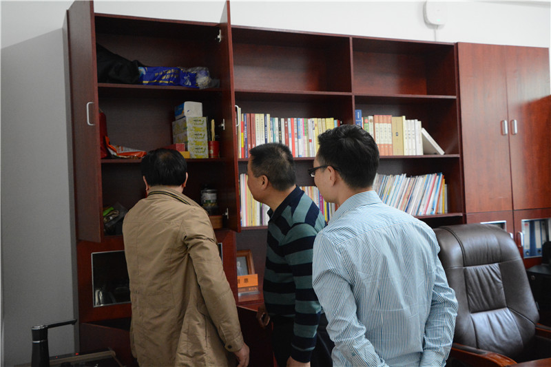 检查组一行深入各办公室,通过“量房子”“开柜子”“看资料”等方式检查了学校办公用房、办公电脑、公务用车使用情况以及公务接待、公务出行、办公秩序等执行情况。就学校思想政治建设情况,检查组一行重点查看了十八大以来学校的组织建设、思想建设和政治建设情况,并详细检查了学校党委有无认真组织学习十九大报告、习近平总书记的有关教育思想,是否落实了中心组学习以及“三会一课”制度等内容。