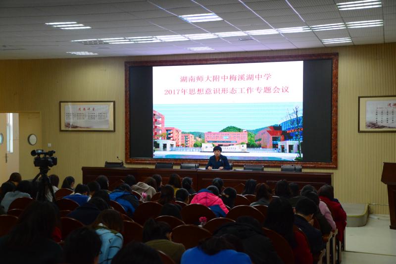 3月8日,我校在道德讲堂召开2017年度思想意识形态工作专题会议,全体教职工参加此次大会,会议由党委书记钟慧莉主持。