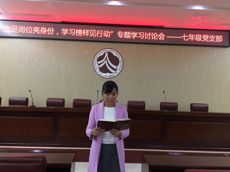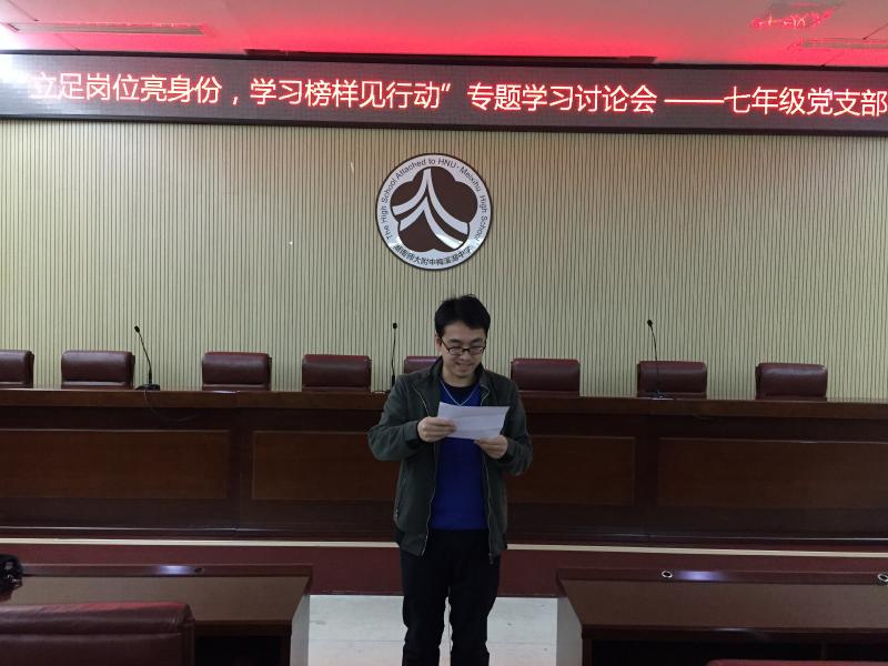 立足岗位亮身份,学习榜样见行动 ——七年级党支部召开专题学习讨论会