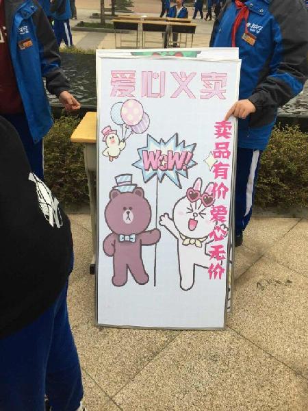 此次义卖活动均以班级为单位举行,筹集的善款将由校团委统一捐赠给贫困地区的孩子。活动从筹划到开展都得了到全校学生及家长们的大力支持。他们本着自愿参与的原则,怀揣一颗爱心,用自己的实际行动诠释着义卖的活动宗旨,不遗余力地参与到义卖活动中来。下午四点义卖活动开始,天气虽寒冷广场上忙碌着的师生们却让校园里散发着浓浓暖意。义卖品可谓是别具匠心、琳琅满目:书籍、玩具、图书、学习用品、配饰、手工艺品、水果,制小点心、小水果拼盘等一应俱全。家长们给予本次活动大力支持,各班家委会成员早早来到学校布置氛围,准备物品;学生切身参与义卖的全过程,感受奉献的真谛,为此次义卖的成功举办献出了自己的一份力量党员教师们负责维持现场秩序、登记好所卖物品及价格。整个义卖现场气氛热烈、秩序井然。