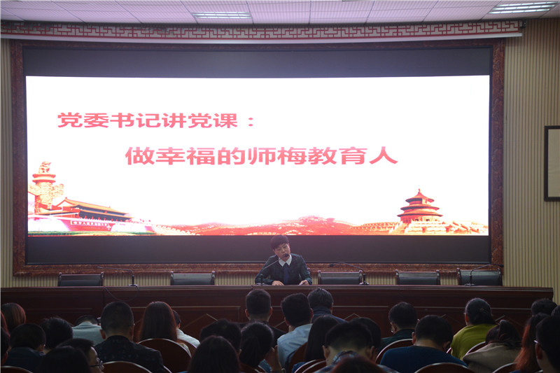 接着,党委书记钟慧莉为全体党员上了一堂题为“做幸福的师梅教育人”的主题党课。钟慧莉从“幸福”二字着手,结合最美教师“一辈子只做一件事的工匠精神”和“不是看到希望才坚持,而是坚持了才有希望”的动人事迹,进一步诠释了习近平总书记的“幸福是奋斗出来的”,希望大家用心感受做教师的自豪,用奋斗书写成功教师的幸福。钟慧莉指出,希望全体师梅的党员同志心中有信仰,脚下有坚守,肩上有责任,脑中有智慧。以奋斗者的姿态拥抱幸福人生,做幸福的教师成为每人的目标;幸福地做教师,人人努力践行;做教师的幸福,享受成功的喜悦。2018,希望老师们能把“幸福”(身体无疼痛、工作有成绩、灵魂没烦恼、生活很快乐)当做2018年的关键词。
