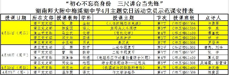 高三党支部党员与入党积极分子示范课安排表
