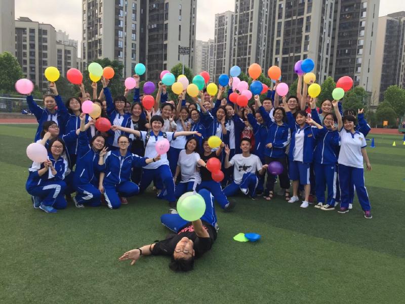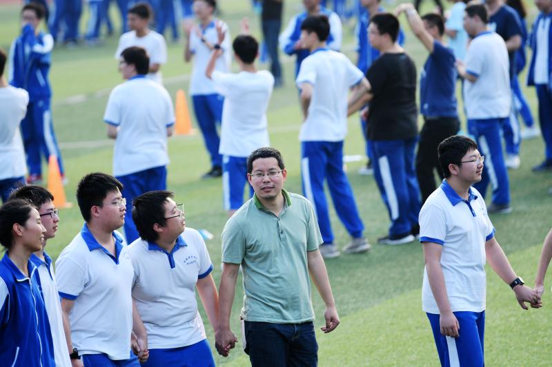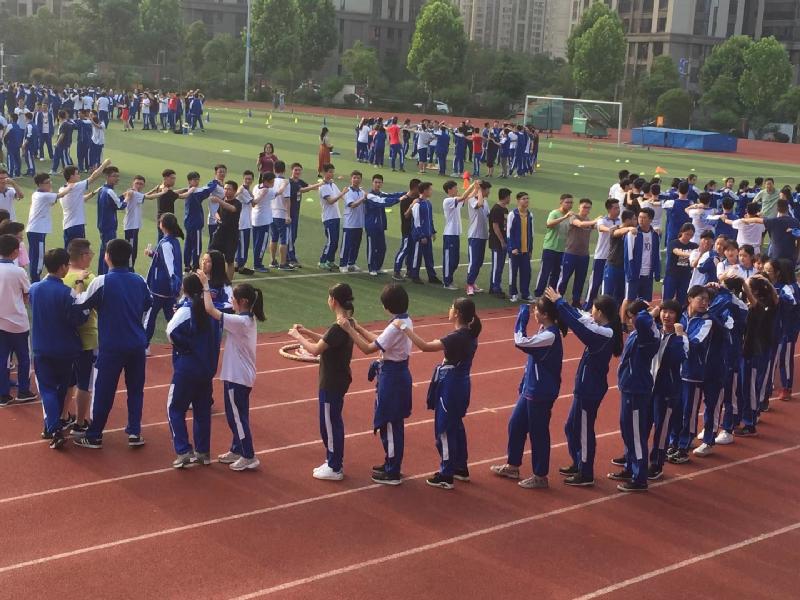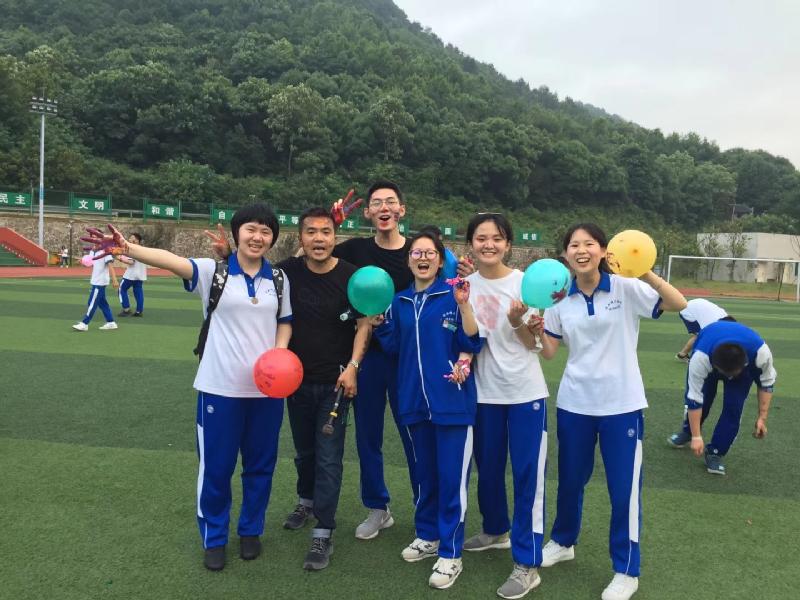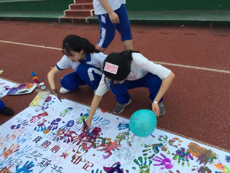 为了给高三年级师生营造温暖、轻松的氛围,释放压力,凝心聚力,漉泉心理发展中心、学生工作处、高三年级组共同策划组织的“风雨同舟、快乐迎考”高三师生心理户外拓展活动于5月21日下午五点在田径场如期开展。学工处主任胡田超为活动致辞,本次活动由漉泉心理发展中心文国香、袁璐两位老师担当主持,部分G1701班的学生志愿者参与其中,协助各班开展拓展活动。在一曲舒缓的音乐中,高三11个班级以班级为单位,围绕成圆形,开始了我们的心路旅程。高三党支部的全体党员以本次活动为契机,很好地参与到学生中来,与学生打成一片,老师与同学互相揉肩捶背说贴心话、一起传递气球、手拉手钻呼啦圈、玩长龙、按彩绘手印、吹气球许心愿……活动中的默契是我们三年来的相处逐渐形成的,通过活动又让党员老师与学生的心灵贴得更近了。