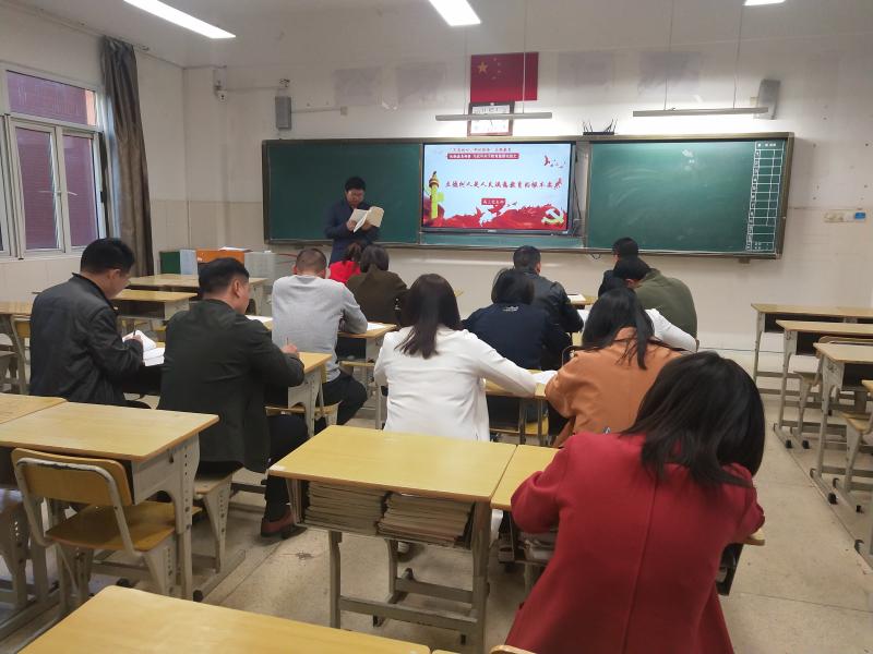 佘玉梅带领全体党员学习了前不久结束的中共十九届四中全会的精神,介绍了《关于坚持和完善中国特色社会主义制度,推进国家治理体系和治理能力现代化若干重大问题的决定》的主要内容,带领老师们系统了解了四中全会的六大亮点。
