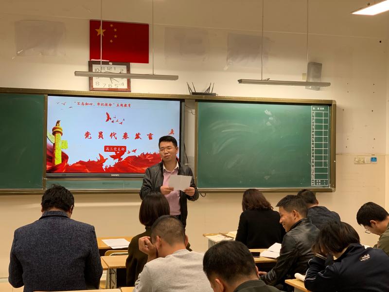 最后,高三党支部的邓涛、高宾、龚兴浪、黎新波、罗澄洋五位党员教师分别发言,发表自己对于“履职责、担使命,真抓实干促发展”的感想。五位老师结合自身教育教学的实际情况,分享了自己在高三教育教学中的一些体会、经验和收获,引起了在座党员老师们的共鸣。
