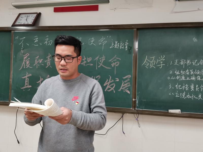 首先,支部书记周涛同志向全体党员教师传达了学校党委关于主题教育学习的要求,勉励全体党员教师切实学习《习近平关于教育重要论述》的内容,认真领会贯彻教育的精神实质,尽职履责、敢于担当、开拓进取,为师梅教育事业发展献计出力。随后,支部书记周涛同志带领全体党员共同学习了《十九届四中全会精神》,组织委员王光裕同志领学《习近平关于教育重要论述》中习近平总书记关于从制度上确保全面从严治党落到实处的重要论述,纪检委员冯宙强同志领学习近平关于教育重要论述之《立德树人师人民满意教育的根本要求》。