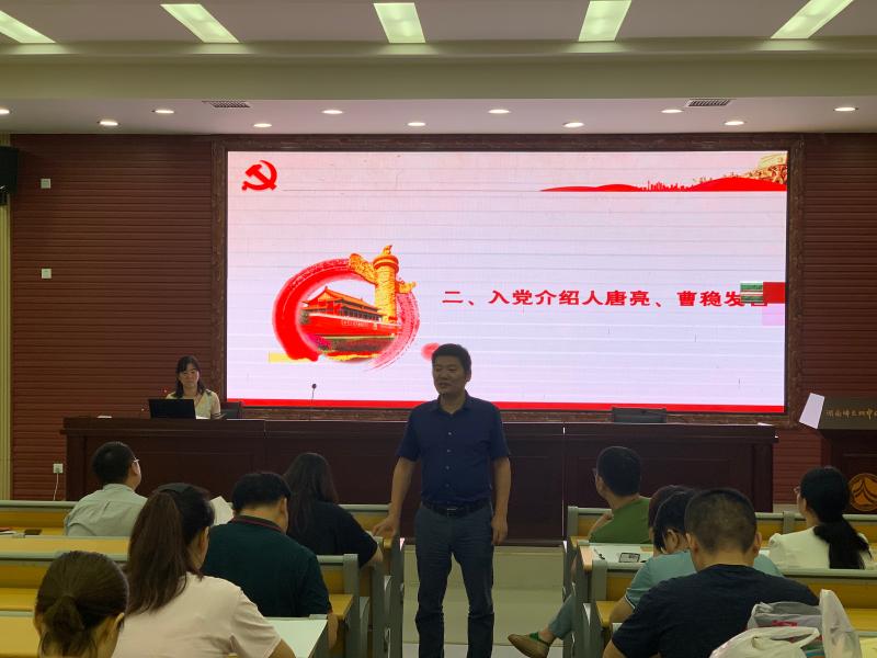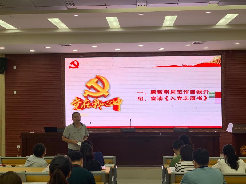本次支部大会主要有三项议程。首先讨论了接收预备党员唐智明同志。佘玉梅向大会介绍了发展党员的基本流程,并通报了本次大会的出席人数。唐智明向大会汇报了自己的基本情况,并宣读了《入党志愿书》。其介绍人唐亮和曹稳也先后发言,对唐智明的思想形态、工作表现和个人品德表示肯定。在讨论环节,与会党员王第和王静高度评价了唐智明对待教育教学工作精益求精、乐于奉献的态度。经无记名投票表决,大会全票通过了唐智明的入党申请。