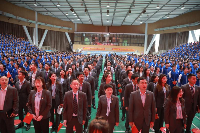 在校合唱团的带领下,全校3000余名师生纵情放歌,唱响红色经典歌曲《在灿烂阳光下》,唱响对美好生活赞颂之情。优美的旋律久久飘荡在校园中,高G2005班的廖敏君同学说:“一直觉得红歌没有流行歌曲好听、时尚,但没想到大家一起唱起来的时候,红歌也是如此动听。”