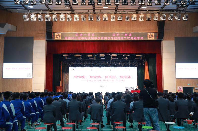 来自湖南农业大学马克思主义学院的周志平教授为全校师生带来了《学党史 知党情 强党性 跟党走》精彩讲座,他带领全体师生回顾了共产党人带领全国各族人民艰苦奋斗、顽强拼搏的革命历程,对“四个自信”进行了深刻剖析,重点分析了中国共产党、中华人民共和国、中华民族最有理由自信的原因,全体师生更加坚定了在党的领导下从胜利走向新的胜利的信心。