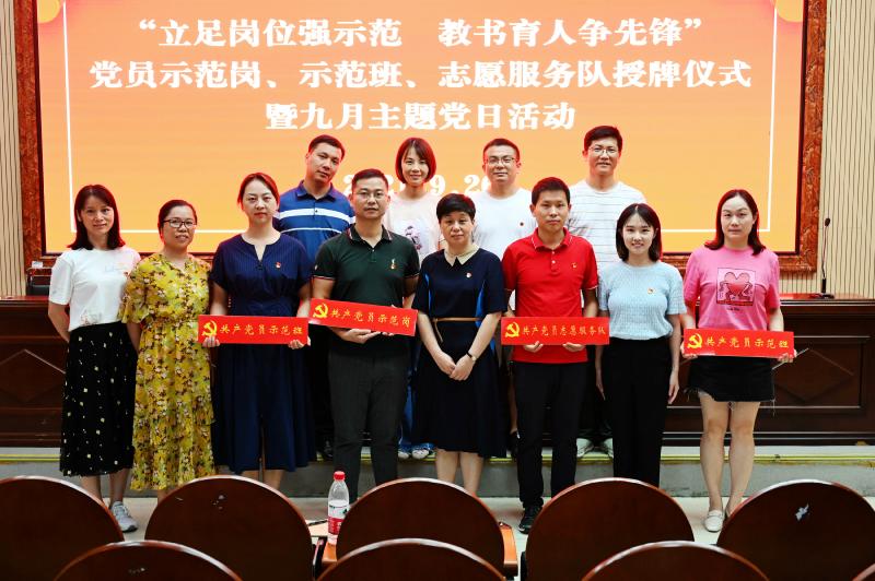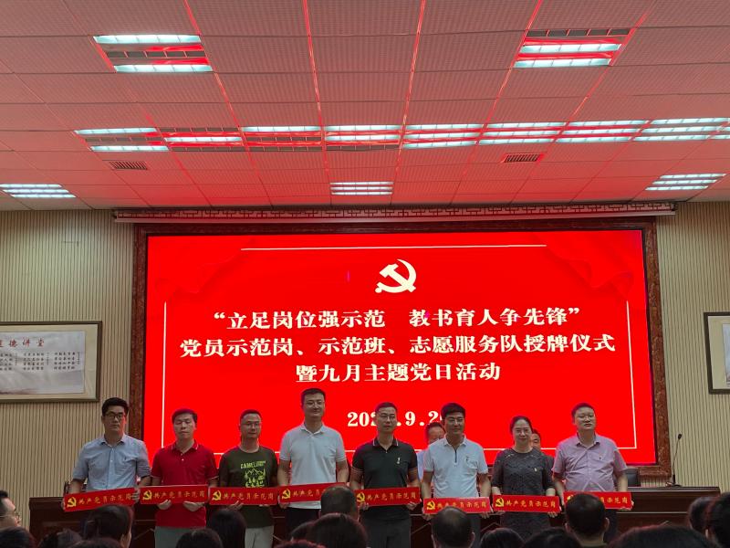 为引领广大党员立足本职岗位,发挥党员带头、示范、辐射作用,2021年9月26日下午,学校党委组织全体党员在学校道德讲堂举行了一年一度的“立足岗位强示范,教书育人争先锋”党员示范岗、示范班、志愿服务队授牌仪式暨九月主题党日活动。