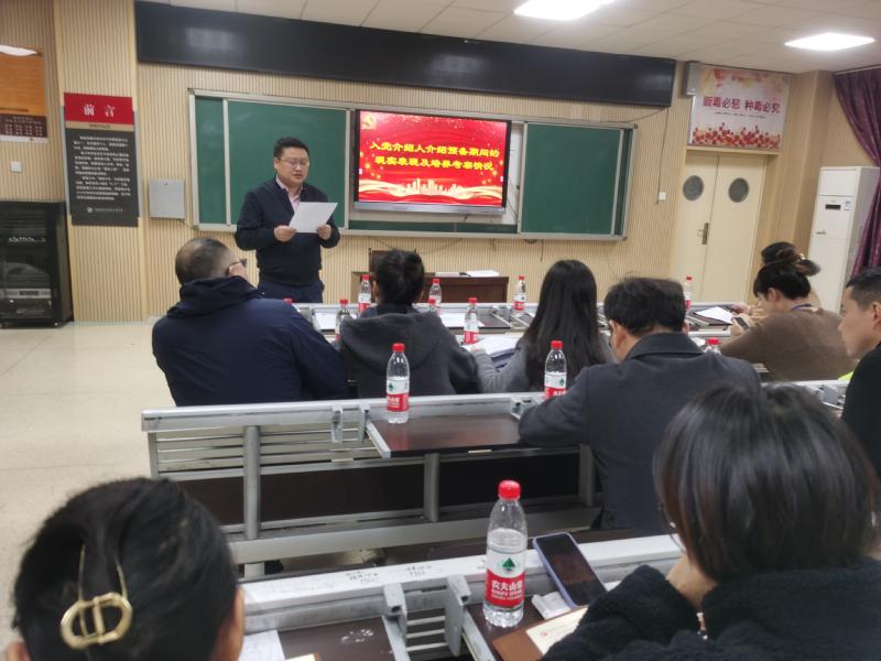 129日下午,高三党支部在教学楼二楼研修室召开党员转正大会,讨论陈一星、唐智明、王武辉等三位同志的转正事项。会议由支部书记彭水珍主持,支部全体党员参加了大会。