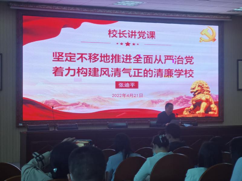 理论学习方面,校长张迪平以“坚定不移地推进全面从严治党,着力构建风清气正的清廉学校”为题面向全体党员教师讲党课。他指出,在实现第二个百年奋斗目标新的赶考之路上,在我们推进学校高质量发展的进程中,我们要深刻理解习近平同志关于“全面从严治党”的重要论述的理论内涵,增强全面从严治党永远在路上的政治自觉。他希望全体党员教师精准把握“严”的形势,切实增强全面从严治党的责任感和紧迫感,并就落实全面从严治党任务结合师德师风建设对党员教师提出了三点要求:一要在学深悟透中筑牢信仰之基;二要在遵规守纪中强化敬畏之心;三要在苦干实干中强化担当之责。在党课学习中,党员教师增强了身份意识,懂得身为教育工作者,我们应始终敬畏人民、敬畏组织、敬畏法纪、敬畏教育事业;要自觉追求高线、远离红线、守住底线,真正把纪律规矩立起来;要各担其责、并肩奋斗建设风清气正的清廉学校,不断推进学校高质量发展,以优异成绩迎接党的二十大的胜利召开!