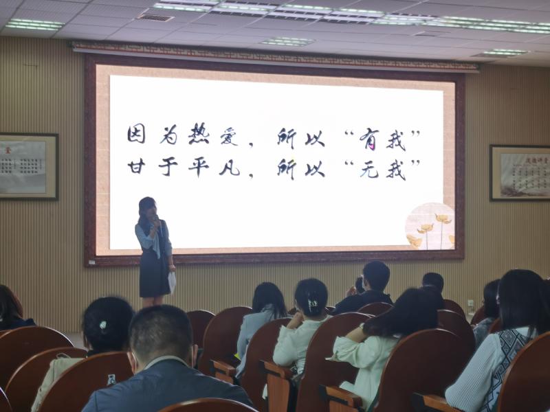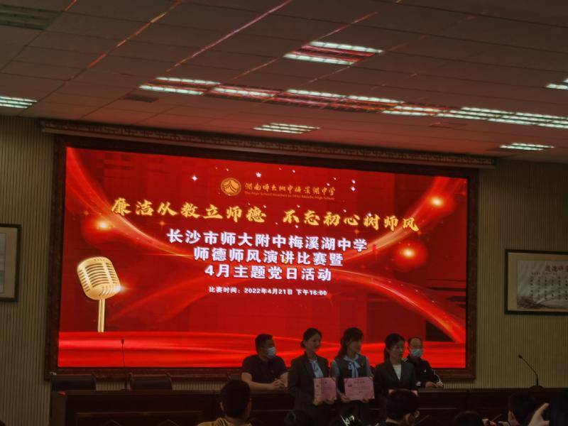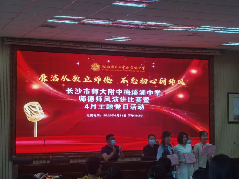 实践活动方面,督导室与党办精心策划了师德师风演讲比赛,各年级工会与支部推选一名教师代表参赛,7位参赛选手以优美的文稿、丰富的素材、真情的演绎展现了师梅教师在各自岗位上默默耕耘、无私奉献的高尚师德。高三教师代表刘婷老师以“我·我们”为题,阐释为人师者应先立德、向德。她站在较高的理论层面,富有哲理地阐明:投身其中、躬身而为的“有我”之境,是师德的第一境界;甘于清淡、无私忘我的“无我”之境,是师德的第二境界。因为热爱,所以“有我”,甘于平凡,所以“无我”。何时“有我”,何时“无我”,处理好这个“我”字,就是她对师德的理解。她旁征博引、娓娓道来,给在场党员教师带来心灵的洗礼、精神的盛宴。使我们感悟到:有德之师,可以行无言之教。