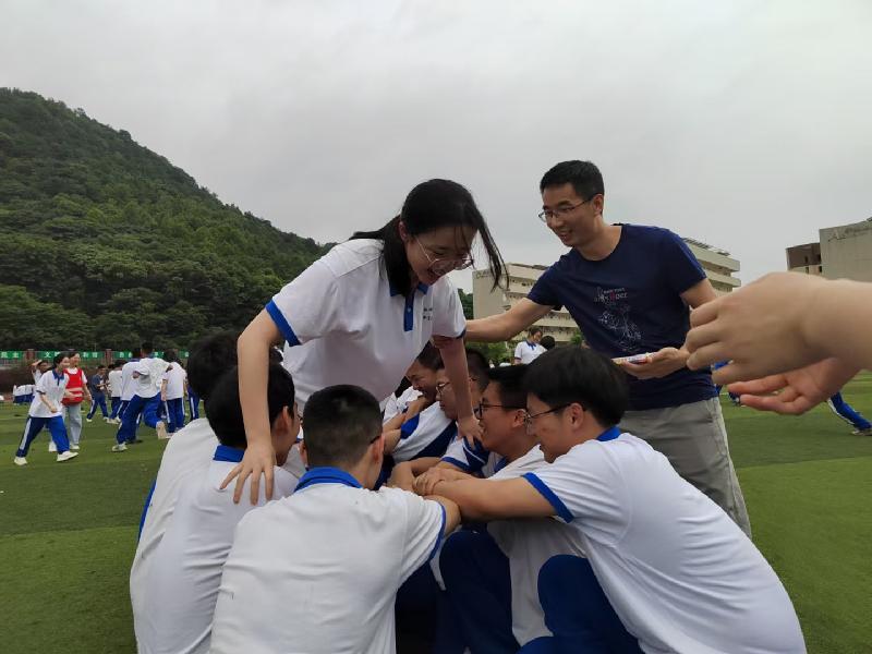 习总书记说要“做起而行之的行动者、不做坐而论道的清谈客。”人民教师应以实际行动砥砺初心,办人民满意的教育。瞄准高考、服务学生、提升质量是目前高三支部全体教师的教育教学重心。距离2022年高考仅剩十余天,为了给高三学生营造鼓励、支持的心理环境,以积极的心态备战高考,在高三支委会的策划下,5月25日下午,在田径场开展了主题为“奋斗青春·筑梦前行”的减压赋能团体心理拓展活动,校长张迪平、党委书记许庆丰、副校长张志、学工处主任王超出席。由心理咨询室文国香老师和高三资深主持人黎新波老师主持,在各班老师和志愿者的协助下,通过“通关口令入场”、“集体按摩”、“同舟共济”“状元桥”“守护梦想”“放飞梦想”“祈福未来”等活动环节,帮助学生释放压力、树立信念、增强信心、逐梦前行。全体高三老师全程陪伴、积极参与、推动活动圆满完成。