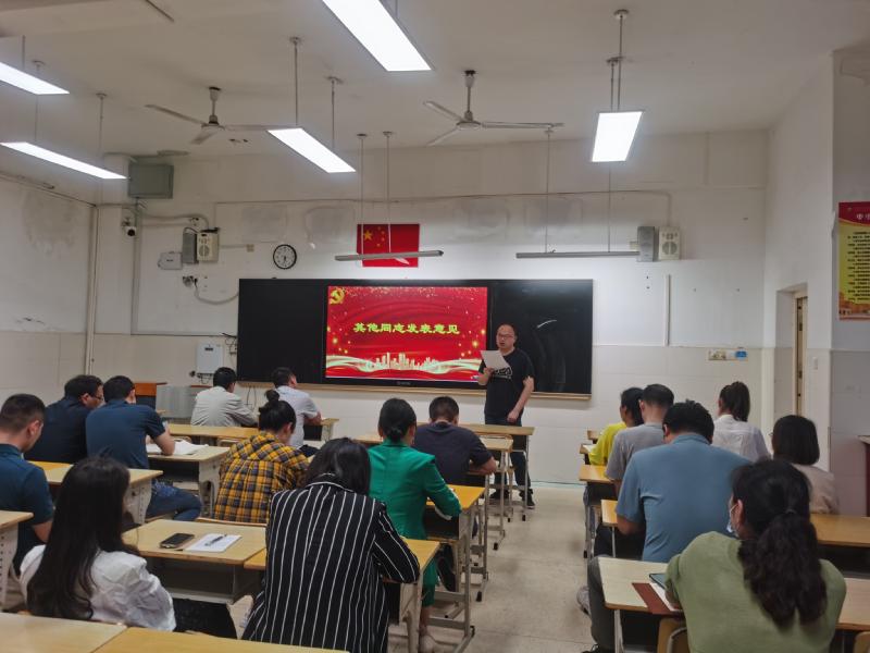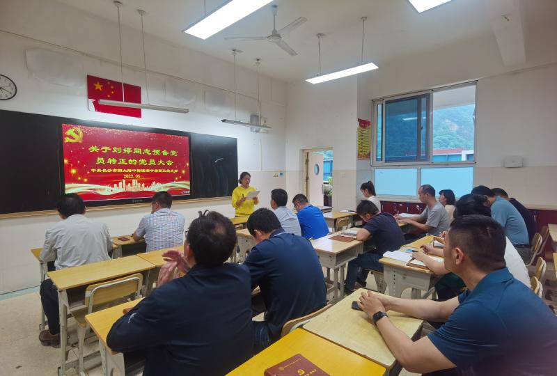 5月28日下午,高三党支部在C栋教学楼五楼走班教室召开党员转正大会,讨论刘婷同志的转正事项。会议由支部书记彭水珍主持,联点领导、校长张迪平参会,支部共17名正式党员参加了大会。