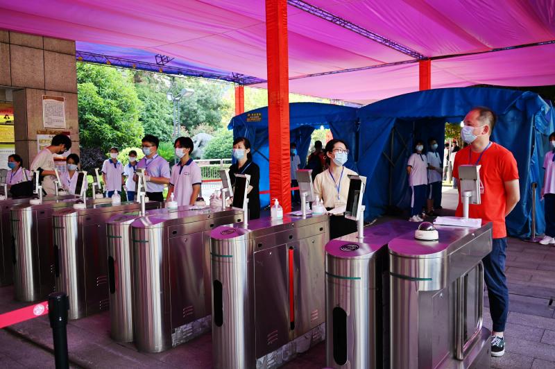 开考前一周,行政党支部制定了“爱心送考”工作方案,设置学雷锋志愿服务点,做好防疫工作,为考生测量体温、检查考场用品、提供口罩、维持秩序、做好引导;为等待的家长和一线工作者提供饮用矿泉水、解暑药品、休息乘凉场所等贴心便利服务,分派党员志愿者到各考点,着力缓解考生紧张的心情,为每位学生提供优质服务。