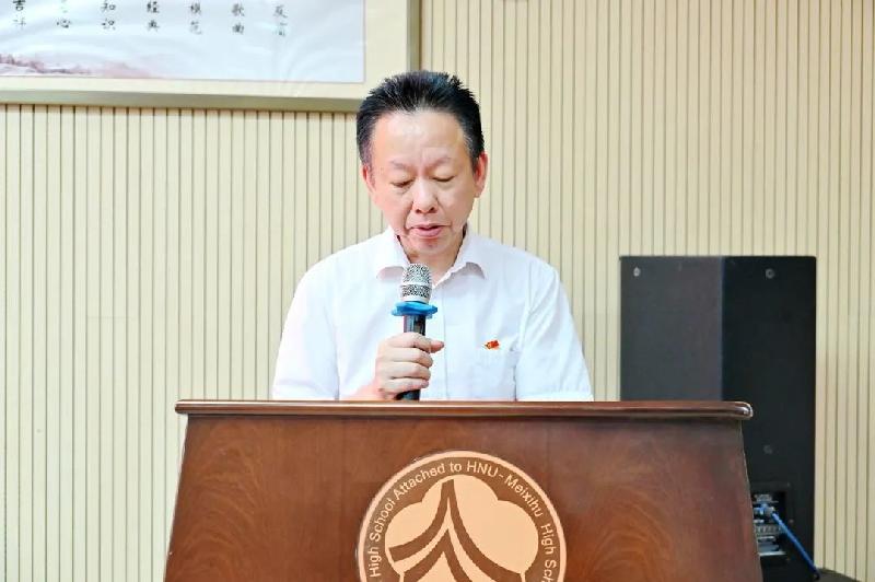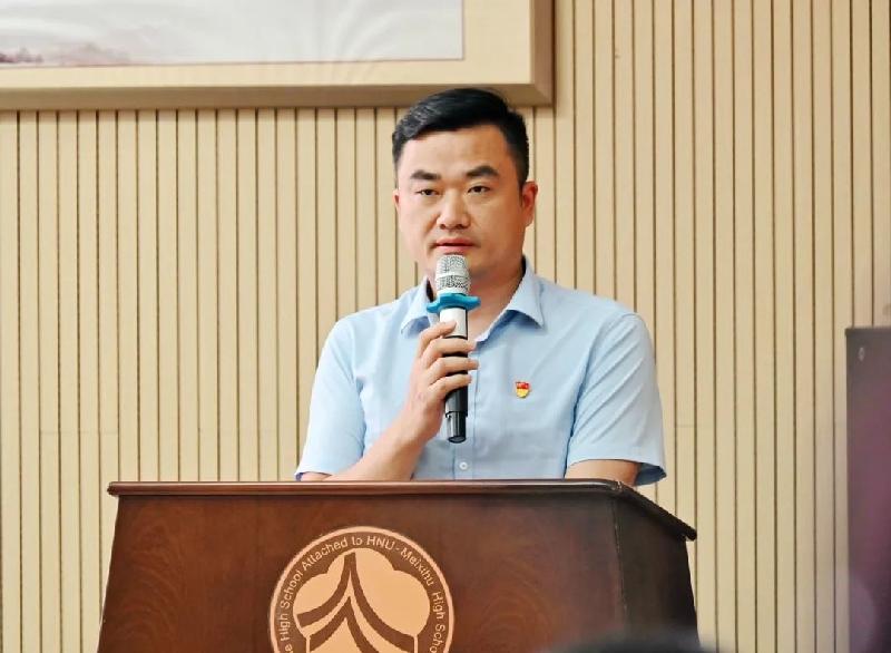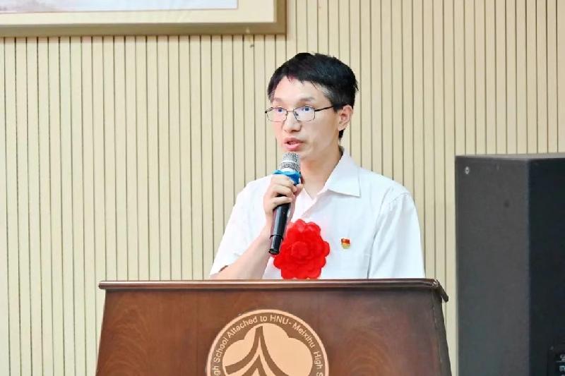 九年级党支部成员黄文光老师代表优秀共产党员代表发言。他回顾接任九年级四班班主任的点点滴滴。“有的学生不愿意早读,我就到教室陪他们一起读书;有的学生作业不会做,我就陪他们一起做;有时候学生忙得吃不上饭,我就给他们买东西吃;遇到情绪低落的学生,我就与其交心,疏导他们。”讲述了一个普通党员教师对学生、对教育最深情的告白。