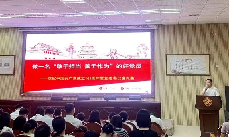 党委书记许庆丰给全体党员讲党课。许庆丰代表学校党委,对受到表彰的优秀集体和优秀个人表示热烈祝贺!向为学校发展努力工作的广大党员,致以节日的问候!许庆丰书记指出今年是党的二十大召开之年,是全面实施“十四五”规划、开启全面建设社会主义现代化国家新征程的关键一年,是落实湖南省第十二次党代会和长沙市十四次党代会精神的开局之年,也是学校发展的第八年。在奋进新时代,踏上新征程,创造新辉煌的“赶考”之路,作为党员能做些什么?围绕这一点,他以《做一名敢于担当 善于作为的好党员》为题,讲授了一堂生动的党课,与全体党员交流三个方面的问题:一是我们为什么一直强调党员必须要有担当。二是衡量一名党员是否敢于担当的标准是什么。三是如何做一名有担当的好党员。重点强调做一名“敢于担当 善于作为”的好党员要坚定理想信念,筑牢担当之魂;要练就过硬本领,提升担当能力;要严格廉洁自律,提升担当底气。这既是对全体党员的殷切期望,也是对党员们的要求。