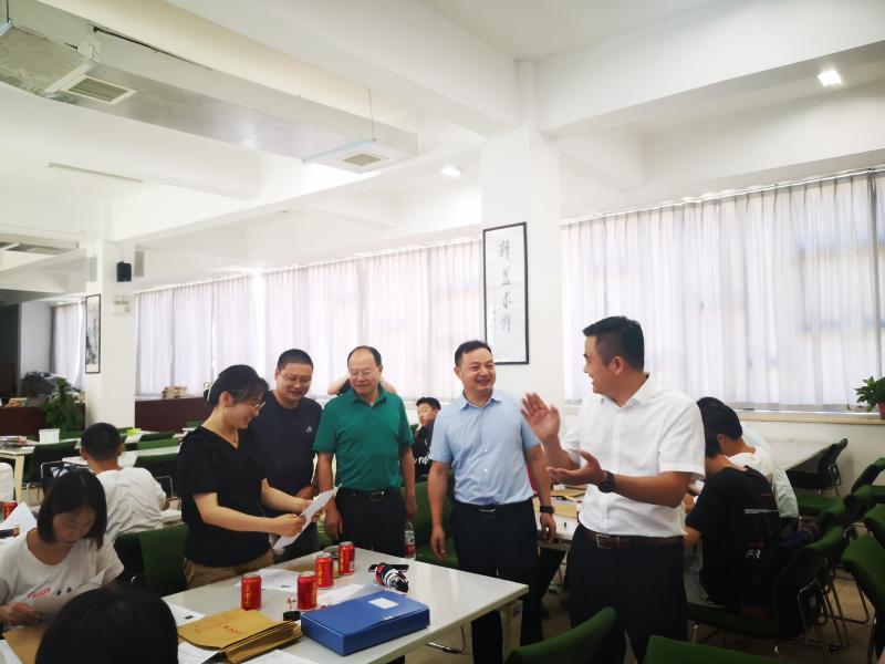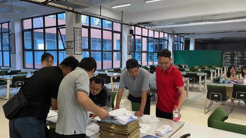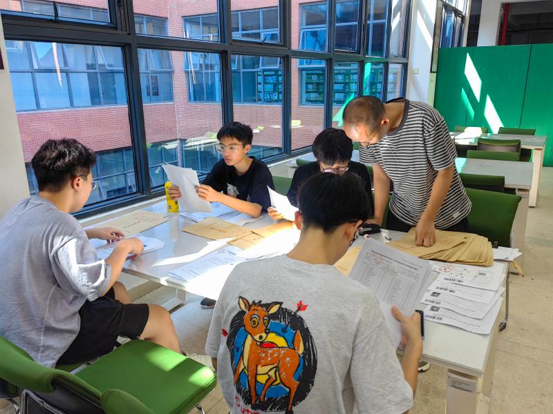 8月9日上午9:00,正值假期,酷暑难耐,但挡不住服务学生的高三教师的热心。2022届高三年级组长曹稳、副组长刘伟组织全体班主任及部分师生志愿者在学校图书馆二楼阅览室整理全年级学生档案,为刚刚毕业的学生们做好最后的服务工作,确保学生们能如期领取档案赴大学报到。学校党委书记许庆丰、校长张志、副校长胡惠到现场慰问,教务处的欧阳曦老师进行现场指导。阅览室内,师生们心情愉悦,认真细致,先由志愿者分类摆放各类材料、将每位同学的不同材料逐份收集,分类装入该生档案袋中,班主任再次核对无误后进行密封,整个现场采取流水线式操作,井然有序。高三党支部的老师们用爱与责任诠释对学生的真情关爱,为2022届高三工作画上圆满的句号。