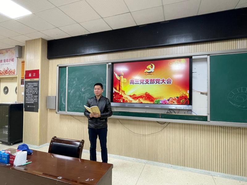 为学习贯彻党的二十大、党的二十届一中全会会议精神,进一步引导党员领悟大会提出的新思想新理念、作出的新部署新要求,11月16日下午,高三年级党支部组织全体党员在学校教学楼B栋二楼研修教室,开展以“学习习总书记在党的二十届一中全会上的重要讲话精神”为主题的党日活动。高三支部书记陈爱国以微党课的方式为大家讲授党课。