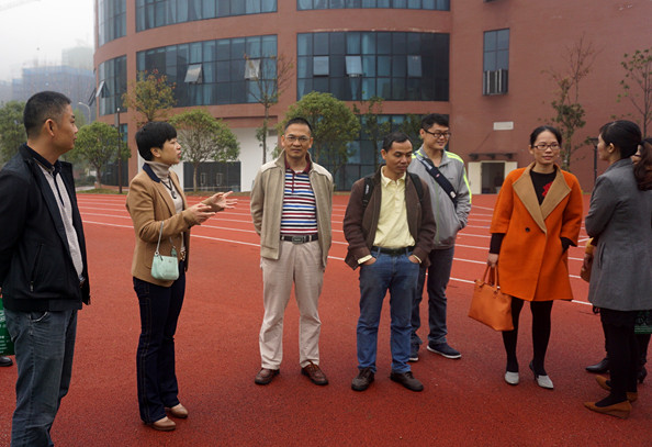 考察期间,钟慧莉带领客人们先后参观了漉泉、体艺馆、田径场、教学楼、教师办公室、学术研究室等,全面而生动地介绍了学校基本情况。客人们高度赞扬了我校校园环境,对学校的硬件设施和管理举措赞不绝口。