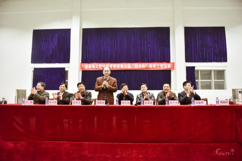 11月21日晚,湖南师大附中教育集团第六届“附中杯”教职工排球赛正式开幕。附中本部和各集团校男女共十二支代表队运动员一百余人参加了开幕式,开幕式由附中本部工会主席刘邵来主持,附中副校长黄月初,党委副书记兼纪检书记、我校校长彭荣宏,附中校长助理、集团办公室主任康辛勇和各集团校校长在主席台就座。