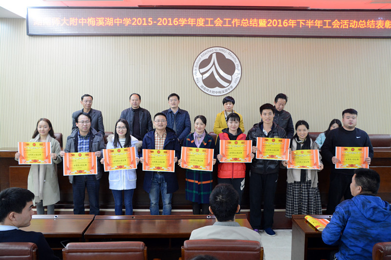 125日下午,2015-2016年度工会工作总结表彰大会在三会议室召开。校长彭荣宏,党委书记钟慧莉,副校长胡惠、张迪平,校长助理屈雪辉,工会副主席宋珍出席会议。全体工会委员及组长,“附中杯”排球赛运动员,各教工协会会长及受表彰的先进个人参加会议。大会由宋珍主持。