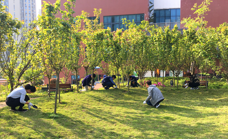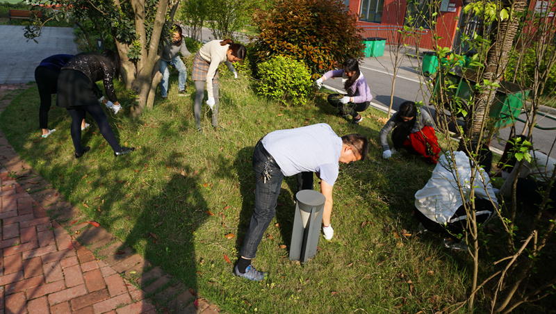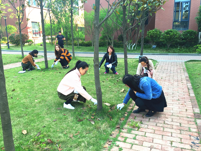 413日下午学校党委联合校团委、青促会,开展义务清除校园杂草活动。阳光明媚,煦风微醺参加活动的老师们于下410准时在学校东门集合。待各小组长分配好任务、讲解了除草要求后,老师们便带着满腔热情投入到劳动中或蹲、或跪或坐猫着腰在树下草丛中清除杂草有的拿着小铲挖,有的戴着手套拔,瞬时杂草堆积成草垛在他们身后留下清新整洁绿油油的一片校园面貌焕然一新。