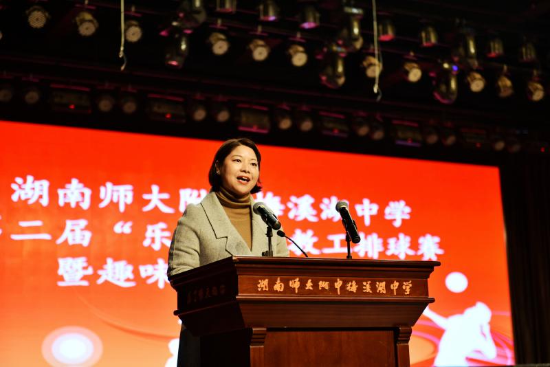 在庄严雄壮的国歌声中,闭幕式正式开始。钟慧莉致闭幕辞,她表示,此次教工趣味运动会不同于往年,在竞技的基础上更增添了“趣味”的元素,使比赛更加轻松、愉快,激发了教职工的参与热情,增强了团队凝聚力,提升了教职工们的幸福指数。此次教工排球赛赛况激烈、精彩纷呈,运动员们在赛场上尽情挥洒汗水,顽强拼搏,每球必争,活力四射。啦啦队们在场下加油呐喊,喝彩声、欢笑声此起彼伏。为期一周的比赛,进一步促进了各工会小组间的交流,展示了“师梅人”阳光健康、积极向上、团结拼搏的精神风貌,增强了“师梅人”的凝聚力和团队协作意识。她坚信每个“师梅人”一定会把在比赛中追求卓越的精神延续到教育教学工作中去。她号召老师们以这次排球赛和运动会为契机,把“精诚团结、顽强拼搏、勇攀高峰、催人奋进”的比赛精神转化为强大的工作动力,总结经验,发扬成绩,克服不足,全面落实科学发展观,在本职岗位上比成绩、比实干,在教育教学改革创新的潮流中勇立潮头,为实现我校教育的高速发展做出新的更大的贡献!