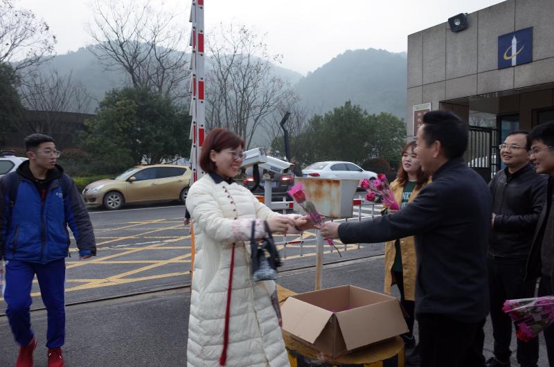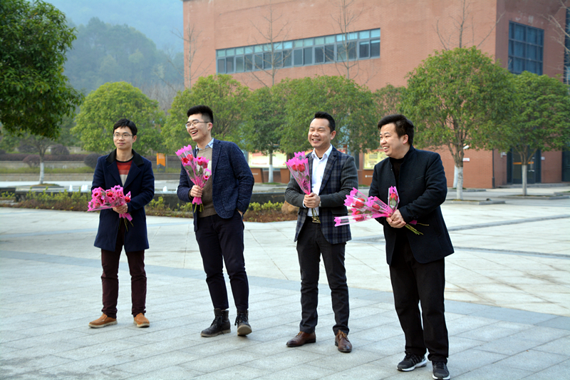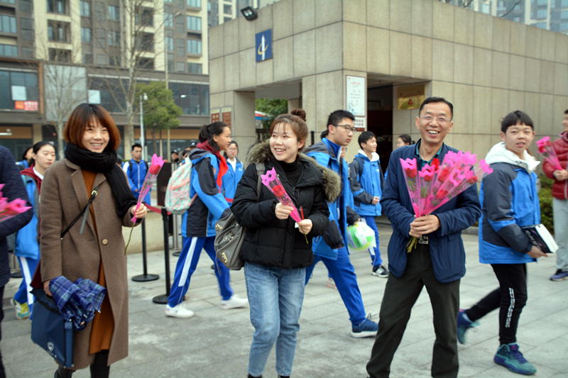 38,晨光熹微,我们的男神们就在校长晏荣贵和书记钟慧莉的带领下守候在校门口,迎候着师梅的女神们!男神们脸上漾起微笑,眼里写满诚意他们把玫瑰赠予女神,作为最好的尊重收到玫瑰的女神们一个笑靥如花。