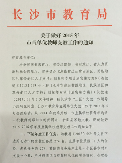 关于申请2016-2017年长沙市直属单位教师支教工作的通知