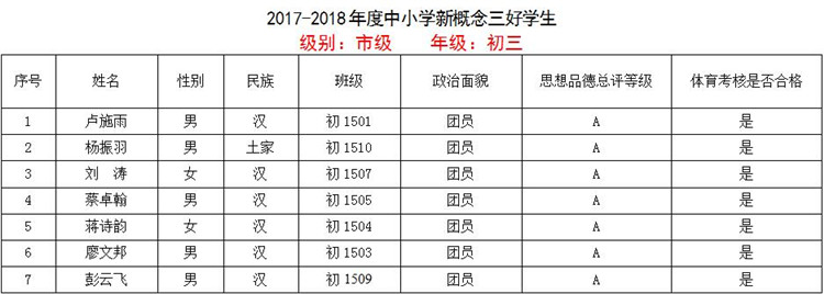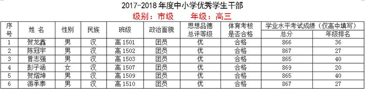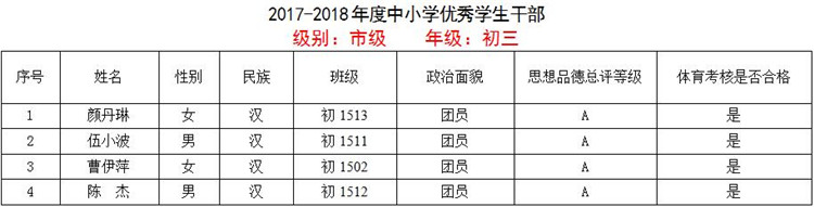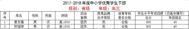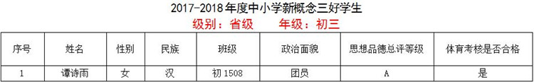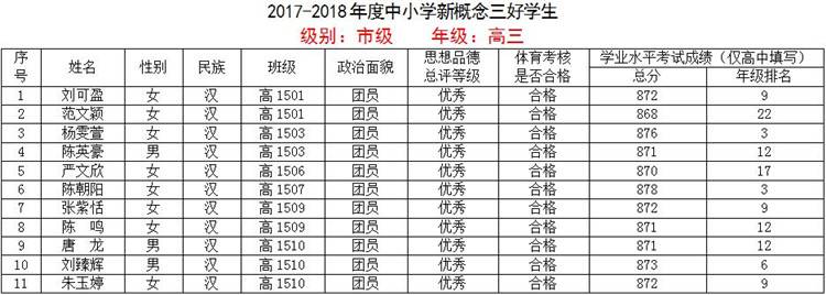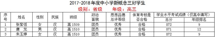 2017-2018学年度省市级新概念三好学生、省市级优秀学生干部评选结果公示