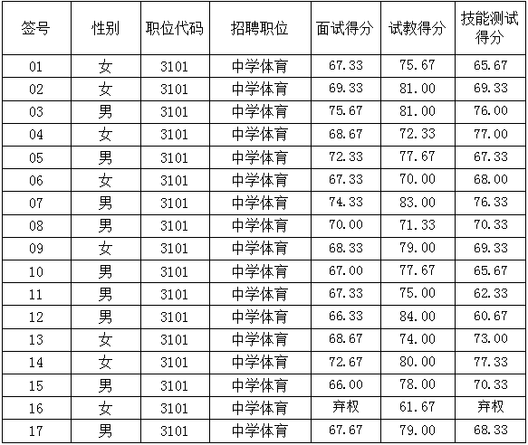 2021年长沙市师大附中梅溪湖中学引进人才考核成绩的公告 来源:校办 发布时间:2020-11-19 17:54:29 浏览次数: 次 【字体:小 大】 2021年长沙市师大附中梅溪湖中学引进人才 考核成绩的公告 各位考生: 我校2021年人才引进考核工作已经完成,现将考核成绩(见下表)予以公布。 长沙市师大附中梅溪湖中学 2020年11月19日 分享到: 【打印正文】