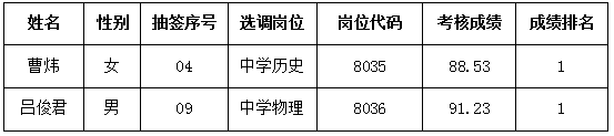 长沙市师大附中梅溪湖中学2021年选调工作人员考核成绩及入围资格复审人员名单的通知 来源:校办 发布时间:2021-06-22 18:31:02 浏览次数: 次 【字体:小 大】 根据我校《报名、考核等工作具体安排》,现将考生的考核成绩(见附件1)和入围资格复审人员名单(见附件2)予以公布。 附: 1、长沙市师大附中梅溪湖中学选调工作人员考核成绩 2、入围资格复审人员名单(共2人) 长沙市师大附中梅溪湖中学 2021年6月22日 附件1 长沙市师大附中梅溪湖中学选调工作人员考核成绩 入围资格复审人员名单(共2人) 分享到: 【打印正文】