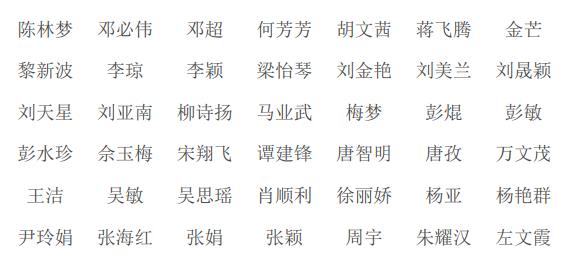 2021年度教职工考核嘉奖名单公示 来源:校办 发布时间:2022-02-21 21:43:21 浏览次数: 次 【字体:小 大】 2021年度教职工考核嘉奖名单公示 根据市委组织部、市人社局文件精神,事业单位可以申报嘉奖奖励。结合近年工作实绩、综合表现及年度考核结果,经校务会研究决定,拟推荐下列42位同志嘉奖奖励: 公示期为2022年2月21日至2月25日。公示期内,校内任何部门或个人如有异议,可通过书面或口头形式向党委办公室反映。 联系电话:0731-89673035 长沙市师大附中梅溪湖中学 2022年2月21日 分享到: 【打印正文】