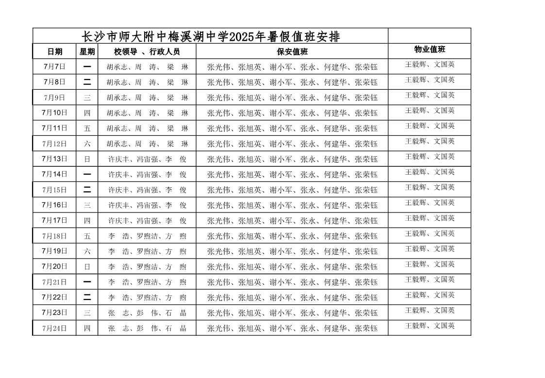 2025年暑假值班安排表