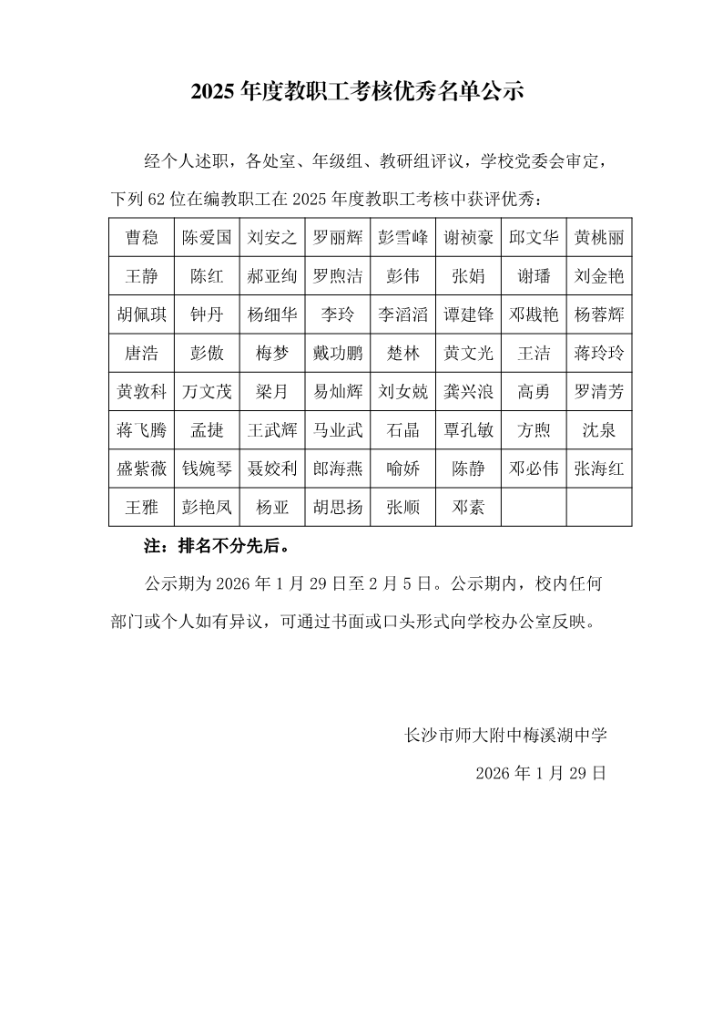 2025年度教职工考核优秀、记功、嘉奖名单公示