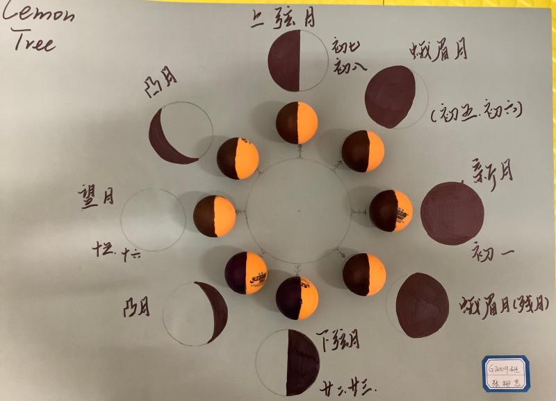 在近年“新高考,新教材,新课标”改革浪潮下,高一地理着重添加了“月相”相关的知识点。为让学生了解月相的形成原因和变化过程,并在观察探究的过程中能将实际观察结果和理论知识相对比,提升地理实践力和地理求真求实的科学素养。9月-10月我校高一年级举行了观看月相变化,并依据月相变化规律制作“我眼中的月相”作品的实践活动。学生对这一特殊的自然现象充满了浓厚的兴趣,积极参与实践,制作出了优秀的月相作品。他们纷纷表示在制作的过程中对月相的变化过程,及月亮在不同日期、不同地点升起和落下的时间均有了更好地理解。