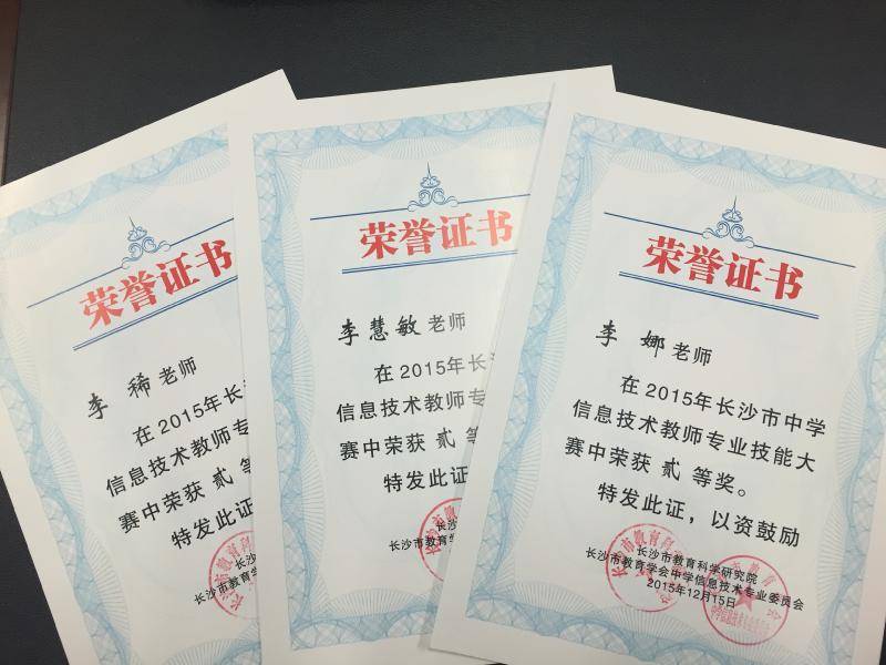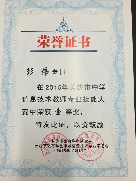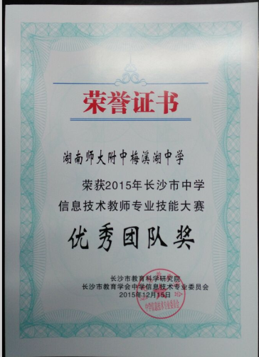 近日,喜讯传来,我校在2015长沙市中学信息技术教师专业技能大赛中荣获优秀团队奖,信息组彭伟老师荣获一等奖,信息组李慧敏、李娜、李稀老师荣获二等奖。