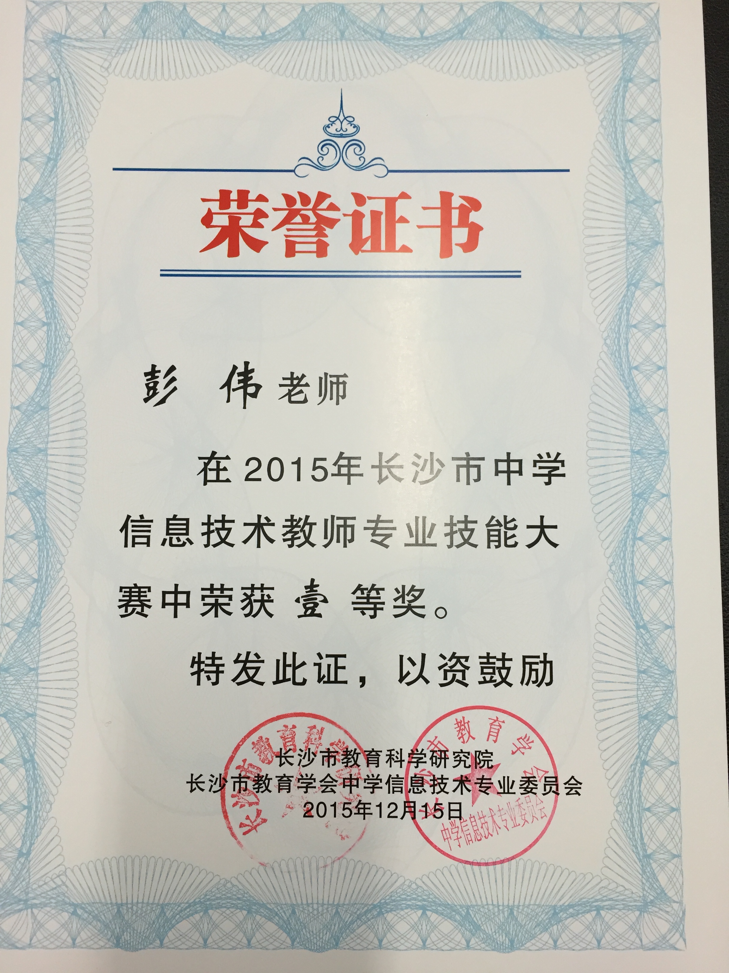 喜报:我校教师在2015长沙市中学信息技术教师专业技能大赛中喜获佳绩