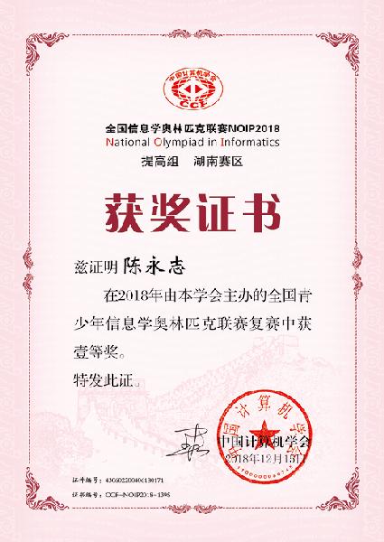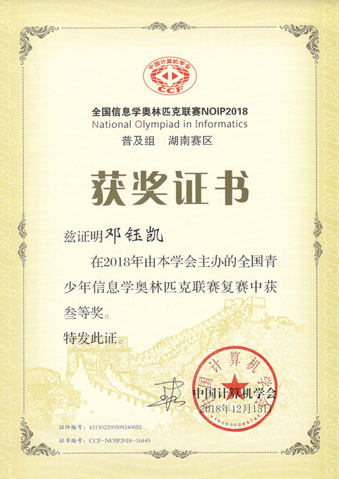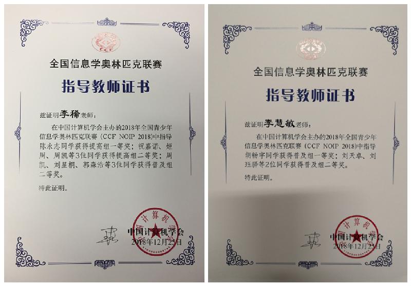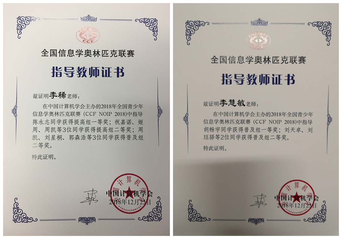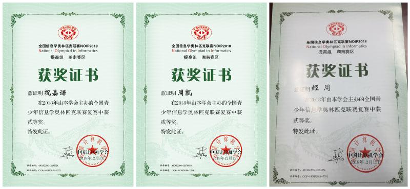 喜报:【信息学奥赛】我校学生在2018年全国青少年信息学奥林匹克联赛中喜获佳绩