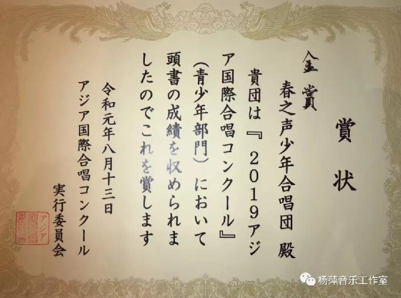 春之声少年合唱团在2019年亚洲(东京)国际合唱比赛暨和平友好艺术节中荣获青少年组金奖!