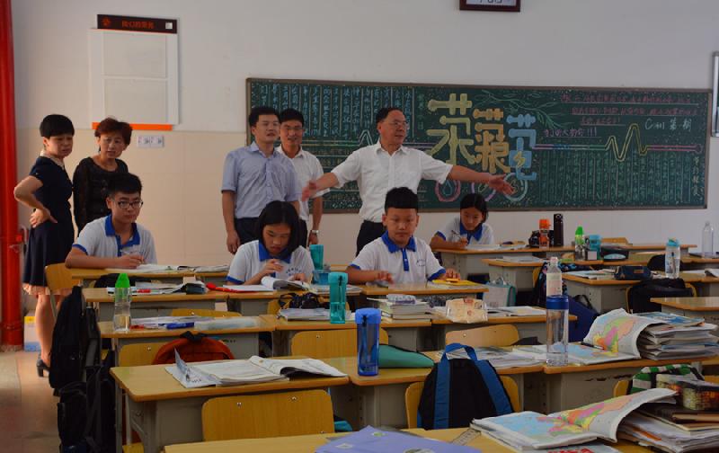 邓江祁一行实地参观了教学楼、图书馆、体艺馆和学生宿舍,认真查阅了相关资料,现场察看了学校各项工作的完成情况,重点考察了实验室和食堂。邓江祁认为,学校开学保障条件完备,“护校安园”行动落实情况良好,学校安全管理工作到位,办学行为规范有序。邓江祁高度赞赏了我校一流的师资队伍和独具特色的校园文化。最后,邓江祁还动情地说:“这个学校让人感到非常舒服,令人感到非常放心、感到非常安全!”