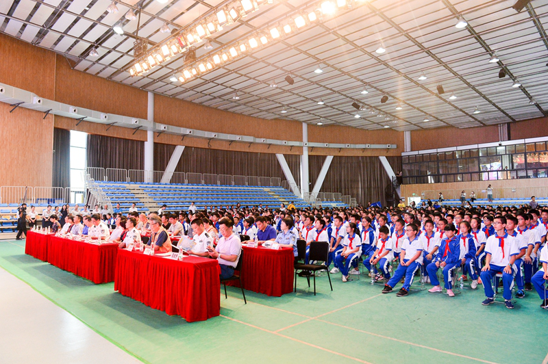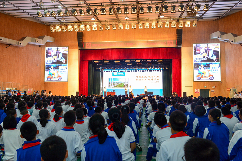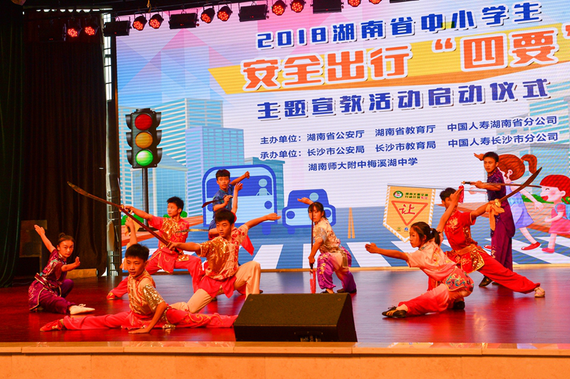 在秋季开学之际,为加强中小学生交通安全常识的教育和普及,有效预防和减少涉学生交通事故,9月13日上午,湖南省公安厅、省教育厅联合中国人寿湖南省分公司,在我校举行湖南中小学生安全出行“四要”主题宣教活动。湖南省公安厅党委副书记、副厅长周赛保宣布活动启动;省教育厅副厅长王玉清代表全省“知安全风险,会安全出行”“两护两进”未成年人交通安全宣传教育活动领导小组讲话;省公安厅交警总队总队长蒋建湘、政委杨能出席。中国人寿湖南省分公司总经理刘霞、三湘名博志愿服务队均代表湖南省文明交通公益联盟发出倡议。