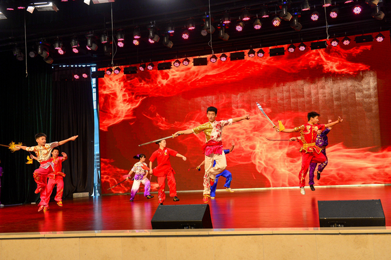 我校学生代表上台领取了“护学旗”,部分学生配合交通警察参与了现场的示范实操,刚刚在湖南省第十三届运动会斩获3枚金牌的校武术队还在现场呈现了精彩的武术表演,赢得在场领导和观众的阵阵掌声。