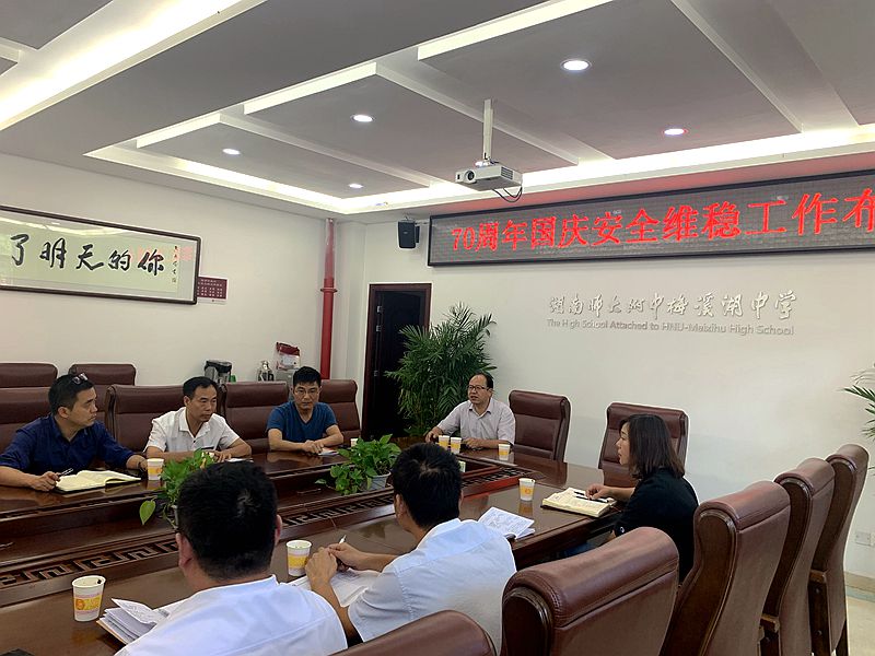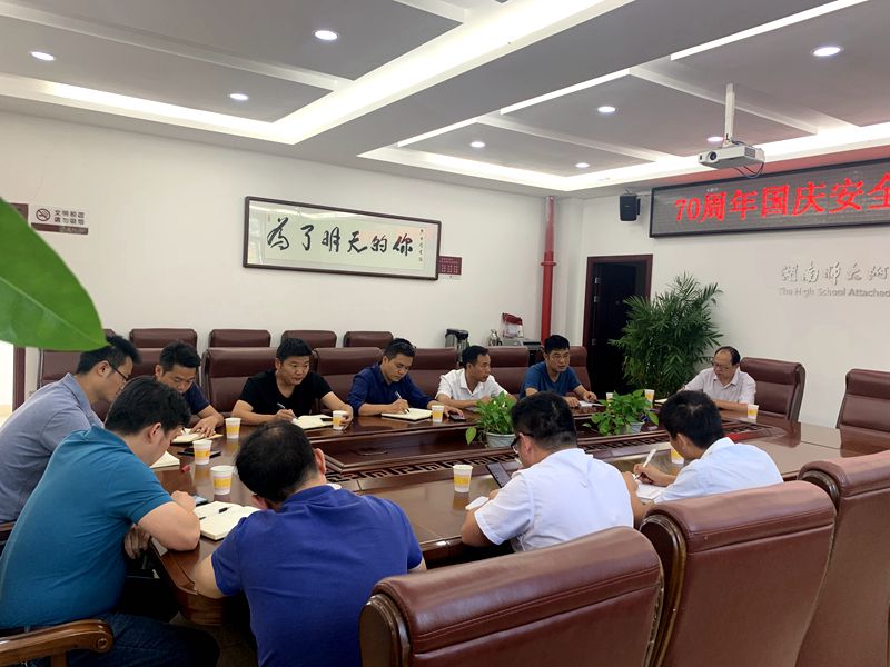 9月24号下午,我校在图书馆四楼一会议室召开了国庆70周年“特护期”安全维稳工作布置会与安全管理工作总结暨布置会。副校长胡惠、保卫处主任兼外事办主任胡田超、总务处主任胡海军、各年级组长、物业、食堂、宿舍相关管理人员参与了此次会议。