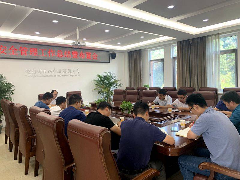随后,胡田超针对我校安全工作及国庆特殊期的安全维稳工作做了相关要求布置和安排。胡田超从以下三个方面提出了要求:一、学生方面:1.学生非放学时间外出需严格审批,进出校园必须刷卡。2.加强运动会期间安全防范。3.做好学生放假前的安全教育(防溺水,防交通事故,防人身伤害等)。4.国庆期间严禁学生私自入校。二、门卫室方面:1.严格执行“四个一律”制度。2.严格执行访客来校询查、核实、刷证、登记制度。3.上下学高峰时段做好武装,密切关注周边动态情态。4.严格保安上班工作作风和工作纪律,不得出现脱岗现象。三、年级组及班主任方面:1.高度重视学生安全教育,每天放学前一分钟,放假前一小时落实安全教育。2.严防下晚自习,课间操学生下楼高峰时间段发生踩踏事故。3.加大对特异学生的全面排查、摸底和建档工作,严禁体罚学生。4.学生寝室完成对违规电器、管制刀具等违禁物品大检查。5.发现安全问题及时报告,实行安全首遇制。