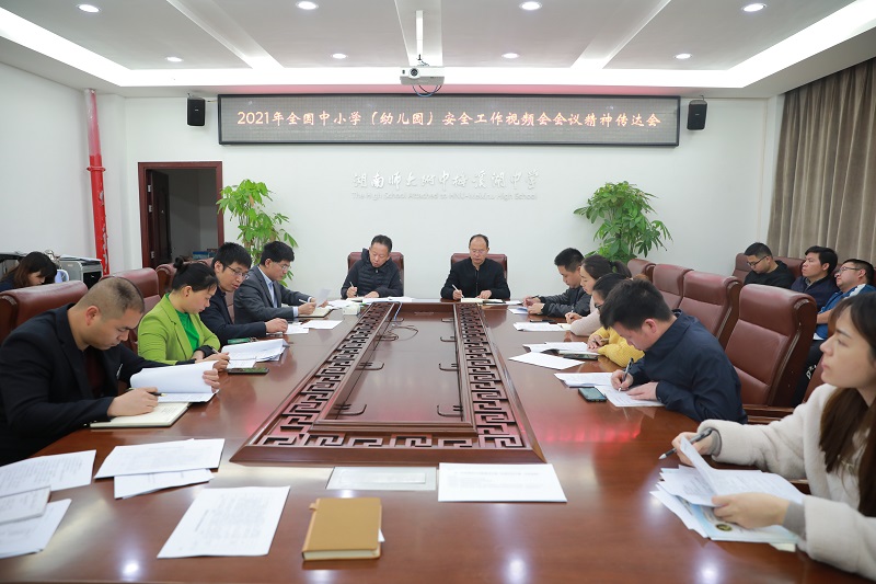 427号,我校在一会议室召开了全国中小学(幼儿园)安全工作视频会会议精神传达会暨2020-2021学年度第二学期安全工作布置会。校长张迪平、副校长胡惠、保卫处、学工处、总务处、团委、各年级组长、医务室、物业、宿管、食堂、校内门店的负责人共同参加了此次会议。会议由校办主任兼保卫处主任胡田超主持。