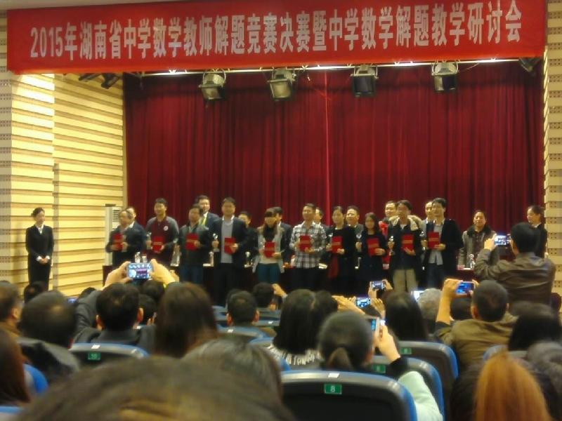 11月21日,2015年湖南省中学数学教师解题比赛决赛在长沙举行。我校数学组教师胡勇发挥出色,荣获初中组特等奖。