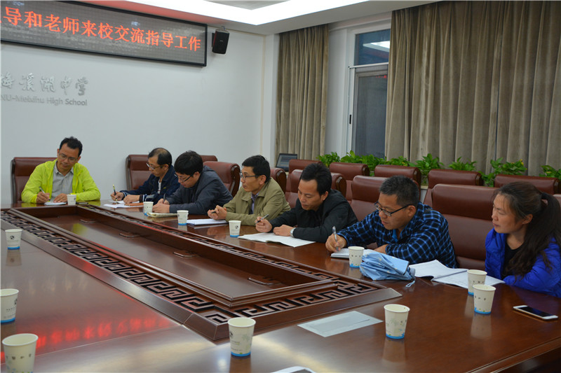 117日下午,北师大(珠海)附中副校长王学军一行7人来我校交流指导工作。校长彭荣宏,副校长张迪平、张志,校办主任谭伟,教务处主任梁平和高三年级各科备课组长热情地接待了客人们。